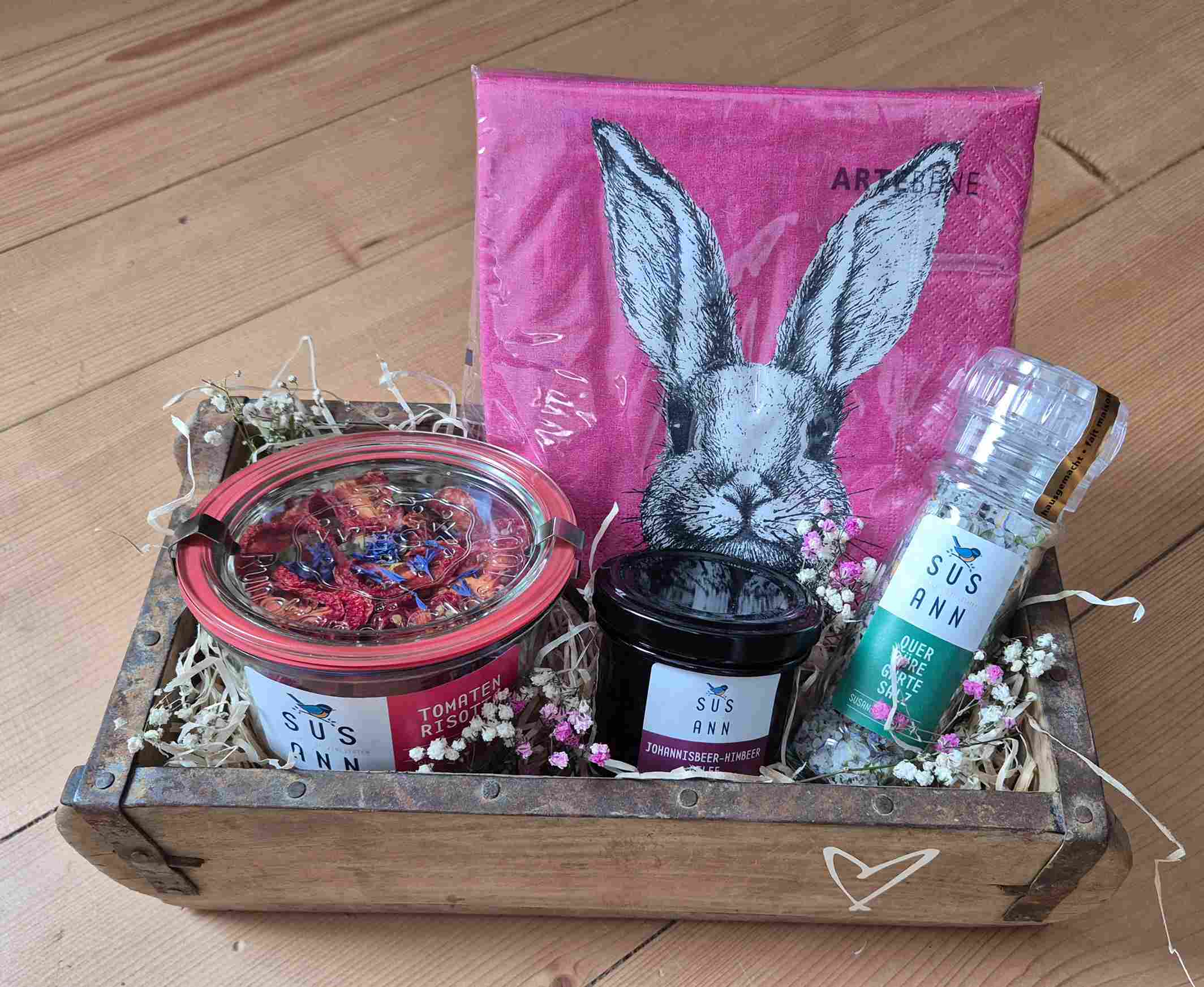 Verschenke kulinarische Freude mit diesem liebevoll zusammengestellten Geschenkset von SUS ANN – handgemacht in der Schweiz mit hochwertigen, natürlichen Zutaten. Ideal als Geburtstagsgeschenk oder als kleine Aufmerksamkeit für Feinschmecker.
