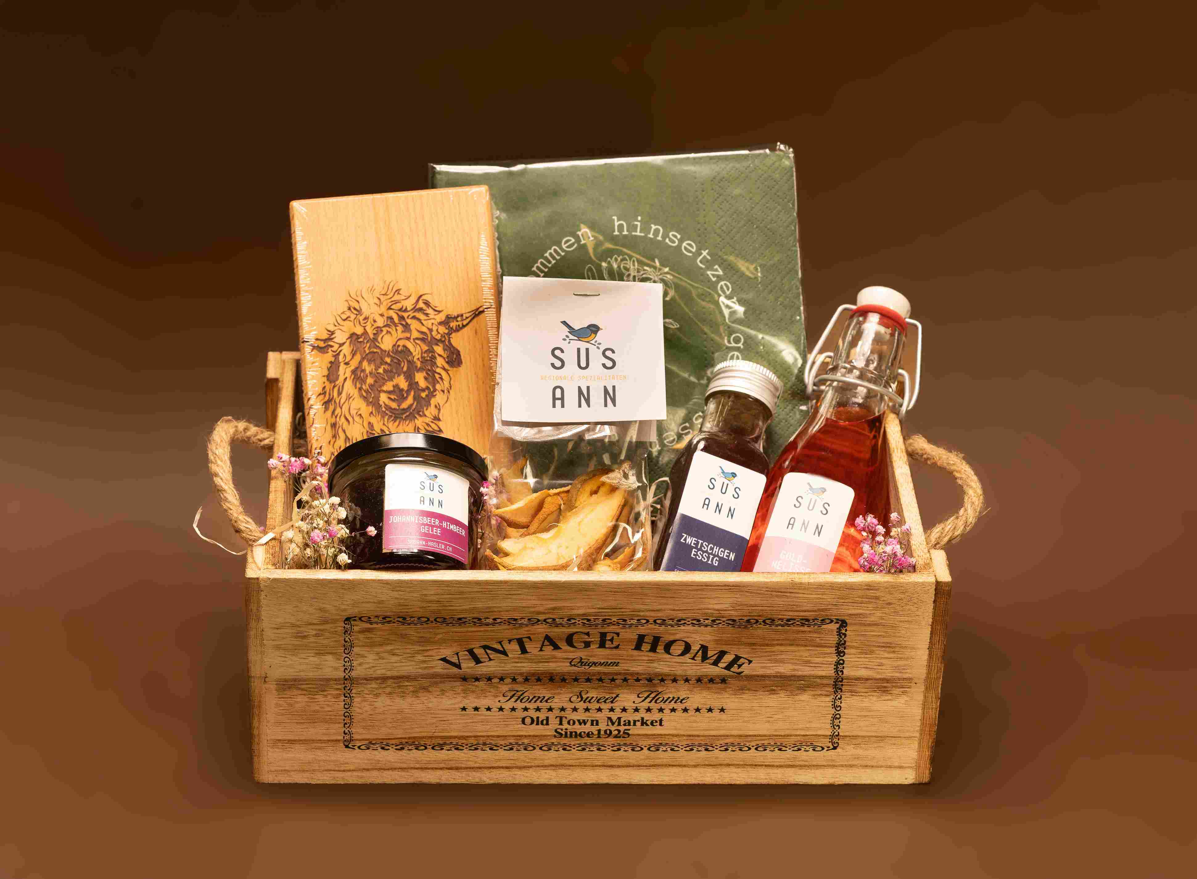 Verschenke kulinarische Freude mit diesem liebevoll zusammengestellten Geschenkset von SUS ANN – handgemacht in der Schweiz mit hochwertigen, natürlichen Zutaten. Ideal als Geburtstagsgeschenk oder als kleine Aufmerksamkeit für Feinschmecker.
