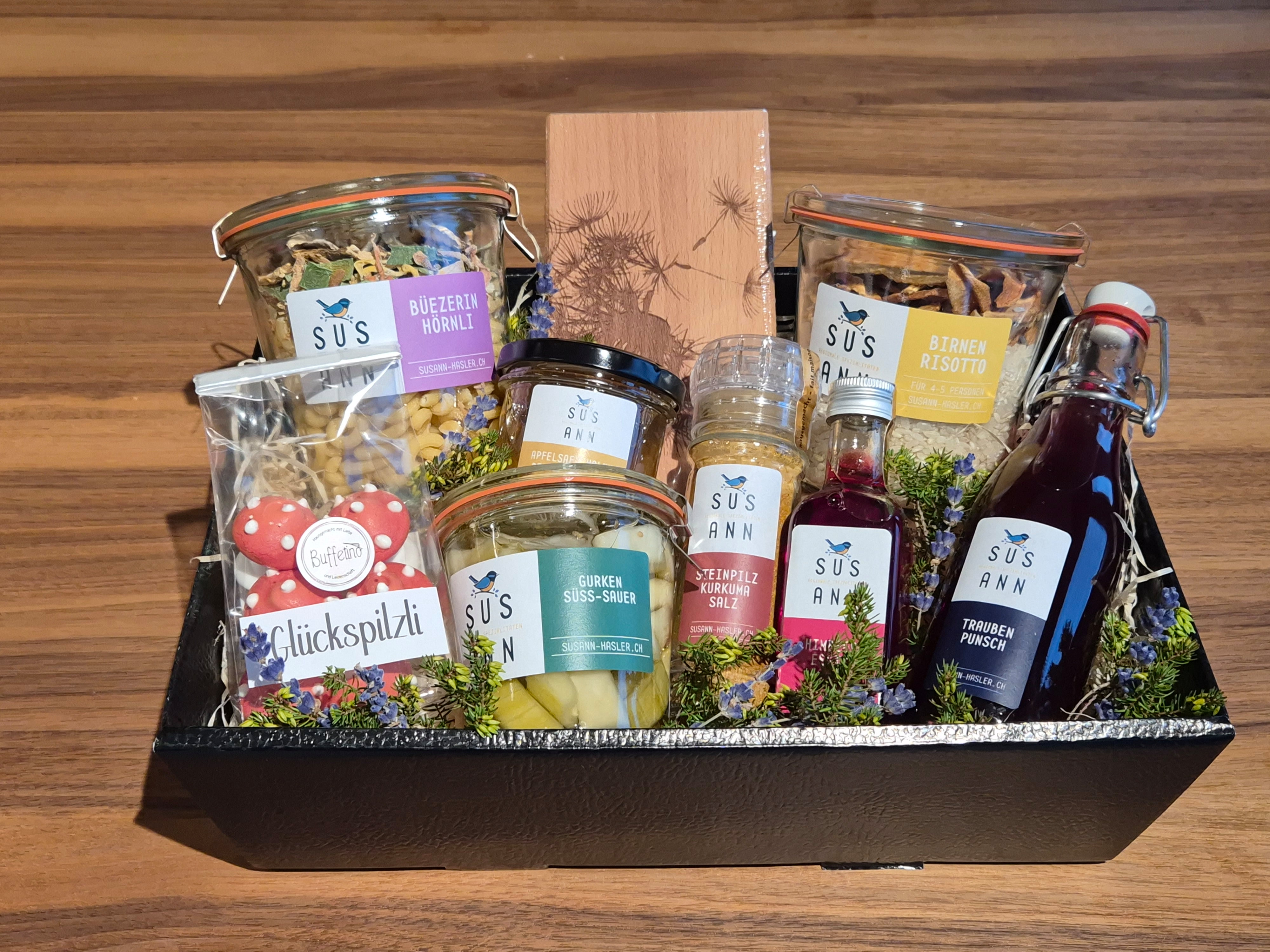 Verschenke kulinarische Freude mit diesem liebevoll zusammengestellten Geschenkset von SUS ANN - handgemacht in der Schweiz mit hochwertigen, natürlichen Zutaten. Ideal als Geburtstagsgeschenk oder als kleine Aufmerksamkeit für Feinschmecker.